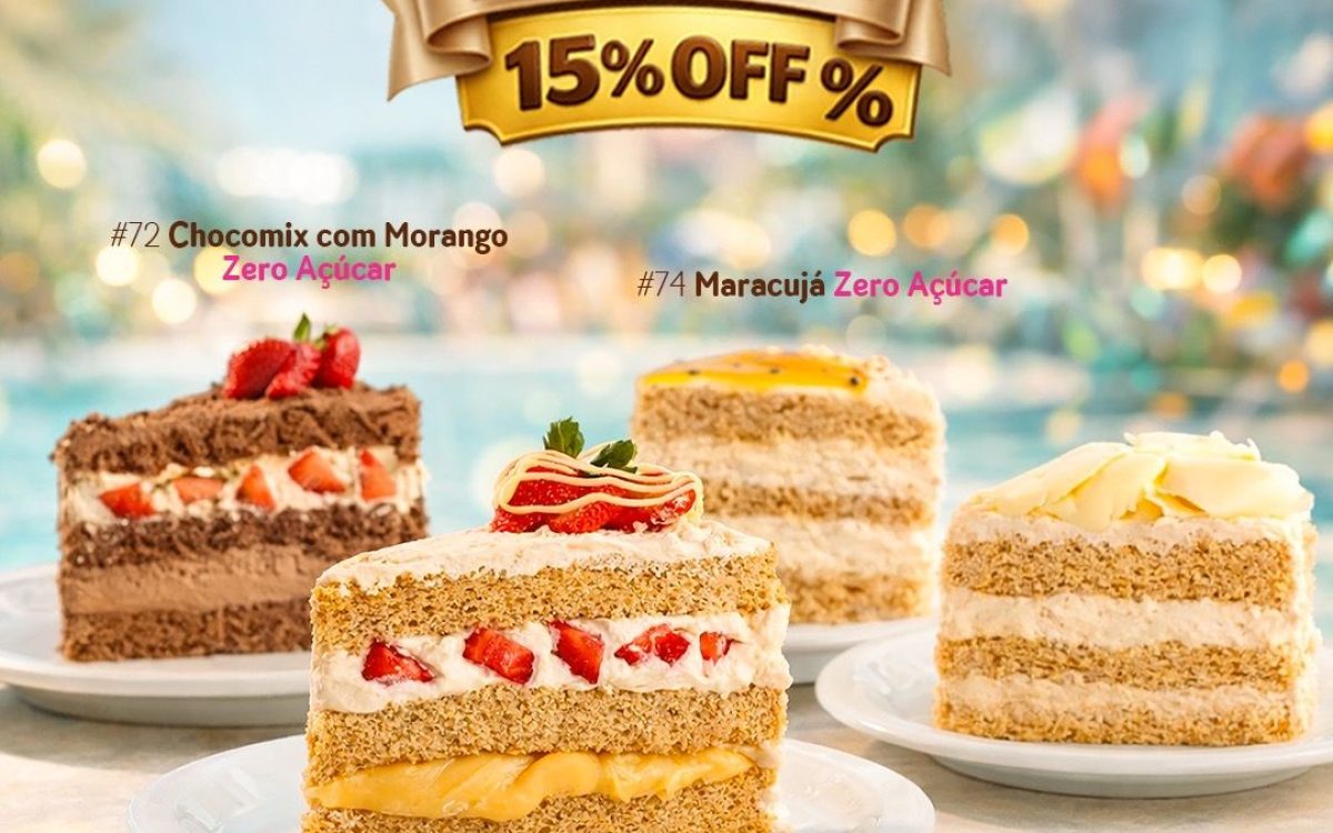 Além da linha Zero Açúcar, a rede também mantém em evidência os Bolos do Mês e os Salgados do Mês de fevereiro — #100 Sofia Rosa e #08 Chifon; Mini Bolinha 4 Queijos e Coxinha de Frango com Requeijão — com valores promocionais nas cerca de 400 unidades da rede.